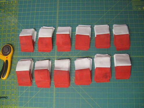 2. Cut lengths of fabric 4 1/4” wide for each side from each fabric.