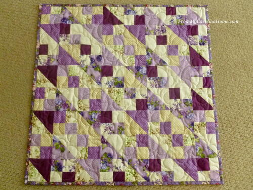 From the Designer: "With so many precuts available now, having a way to use the pretty prints in a project is fun. This quick quilted table topper finishes at about 32-inches square, and easily scales up to whatever size you like simply by adding more blocks."