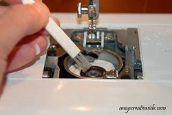 7. Turn ends of handle under 1/4 inch and press. Pin handle ends into bag, overlapping about 1/2 inch. Sew in place and go over the sewing a second time.
