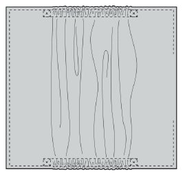 - Cut the elastic in half to yield 2 pieces, each 11" long. Working through the 8" opening, insert the elastic into both casings. Pin securely at both ends. Secure the ends of the elastic by stitching an X in a 1" square.