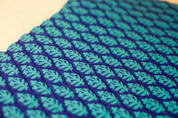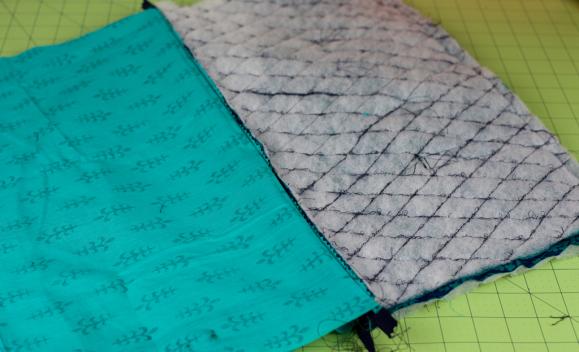 Front and back of the purse have an exterior fabricThe front and back of the purse have an exterior fabric (seen here) that are layered over a thick layer of batting. You need to quilt the fabric and batting (with no backing fabric) in a diamond pattern. My fabric had a printer pattern that easily guided my diamonds, but you could choose any other quilting pattern you want. After quilting, (the quilting process will probably take the most time out of this project!) trim the front and back pieces to measure 18 by 12 inches using a 45mm Rotary cutter and an acrylic ruler.