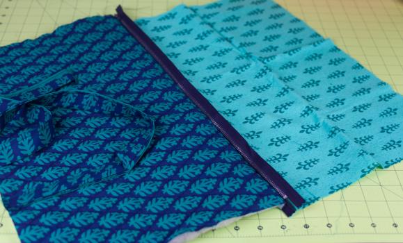 Open out the layers after sewing the zip, and press the seams out gently. The bag should look something like this at this point.
