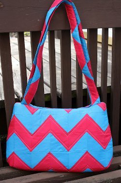 Learn how to make a simple quilt purse out of red and blue half square triangles with this Underwater Stripes Quilted Bag pattern. The zigzag design looks like it could be difficult to piece, but it's actually quite easy to create with triangles. With a piecework handle, a red polka dot lining, and a zipper closure, this bag is ready for every day use! The chevron pattern is super popular during the summer, so you'll want to carry this DIY bag everywhere including the beach and pool to show it off.
