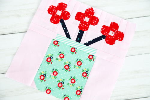 Update the traditional gift of flowers and make your loved one this sweet little Flower Jar Quilt Block Pattern instead. This spring quilt block pattern is a fun project to work up in a day. And, it comes with a fun quilt along that will show you how to make a full quilt pattern using this and other spring quilt block pattern. So, whether you are looking for a quick pattern or a lasting project for the season, this tutorial is a wonderful option!