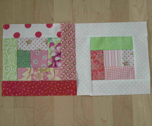 There are few free quilting block patterns simpler than the humble log cabin quilt block. You can even make Scrappy Log Cabin Quilt Blocks with leftover strips of fabric. Take a cue from this tutorial, and make your blocks in green, white, red, and pink scraps.