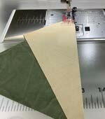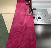 Using the ¼” edge guide of the Clear View Foot, and stitch down length of pieces to sew right sides together. Complete with all 5 pieces of Triangle A to Triangle B. Press fabric to Triangle A side with an iron.