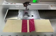 Stitch one cream 2 ¾” x ¾” strip to one red 2 ¾” x 1 1/8” strip using Clear View Foot edge guide to make a ¼” seam allowance. Press to the red fabric.