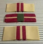 Stitch the following pieces in order to create the top and bottom rows of each Present blocks: cream (2 ¾” x 2 ¾” ) to red/cream/red piece to cream (2 ¾” x 2 ¾”) piece. After stitching there should be a total of 16 strips to be separated for the top and bottom rows of the Present blocks.