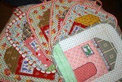 These adorable Doll House Quilted Pot Holders are almost too cute to use while cooking! You'll like them better than most free quilted pot holder patterns because the pieced doll houses with fussy cut embellishments give them a special touch! As with most quilted hot pad patterns, be sure to use heat-resistant batting for safety!