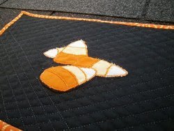 Nothing says Halloween quite like candy corn! Make a candy corn mug rug with simple Halloween applique patterns in the shape of candy corn. Then quilt the plain black background in a cross-hatch pattern to make the candy corn pop!
