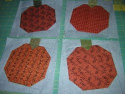 Looking for a festive pumpkin quilt pattern for Halloween? Piece together these pumpkin quilt block patterns and add happy jack o' lantern faces for holiday fun! Part 1 of this tutorial teaches you how to piece the pumpkin blocks. Use a different orange fabric for each pumpkin to add interest to this quilt.