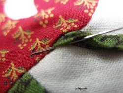 This article on hand applique tips demonstrates how to hide loose threads on the back of a quilt or under the applique itself. The step-by-step photo tutorial will show you how to start and stop sewing so that both thread ends are hidden.