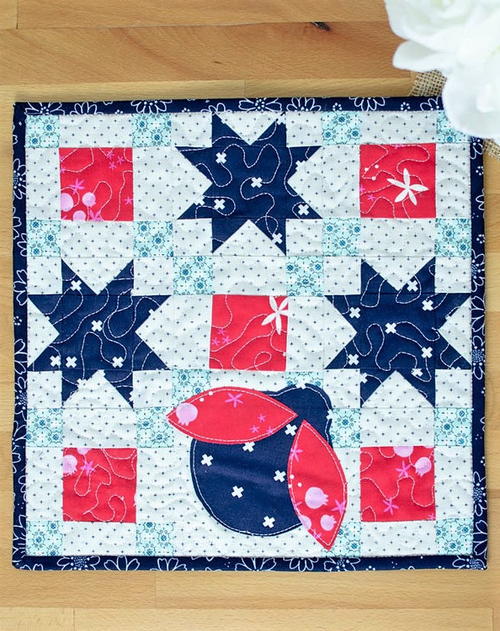 Spread some patriotic love this summer when you make the Ladybug Liberty Mini Quilt Pattern. This adorable Fourth of July quilt is super quick and easy to make, thanks to its use of fat quarters and simple geometric shapes. Featuring red, white, and blue fabrics, this spirited quilt will add a burst of patriotism to any summer party that you host. Plus, the little ladybug applique pattern is almost impossible to resist!