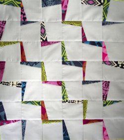 The name says it all for this Lightning Fast Mini Quilt. Small quilt projects give you the sense of satisfaction that comes with finishing a quilt, but they can be finished in just a few hours. This super-fast, colorful mini quilt is also a wonderful stash-buster. With white background squares, you can choose any fabrics as accent colors.