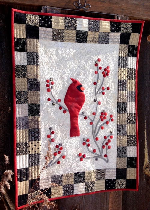 The Redbird and Berries Decorative Mini Quilt is one of the best examples of the place where quilting and art meet. This beautiful mini quilt pattern uses fat quarters and charm packs to create a visually stunning design that would be perfect as a wall hanging or table topper. The free-motion designs add a wonderful sense of movement, almost like a breeze on a beautiful fall day. This is one of the best applique patterns to use if you want to create a project that looks complex and artful but doesn't require overwhelming skill and mastery. Grow your skills as a quilter with this gorgeous quilt!