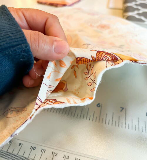 Turn the cover right side out through the opening. Push the corners out with a point turner or tool and press the cover to get out any wrinkles.