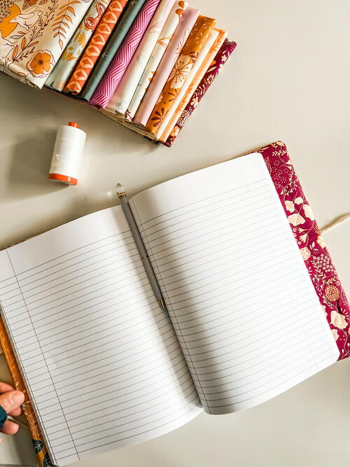 - Three Fat Quarters (3 - 18" x 22" pieces of fabric) for journal exterior and interior