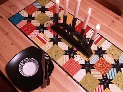 This quilted Christmas table runner adds Christmas spirit with folksy patchwork charm to your holiday table. The Jingle Jolly Quilted Table Runner shows of Christmas quilt fabrics in a star pattern that can easily be adapted for other holidays as well. You can make this patchwork quilted runner using any charm pack!