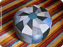 Recycle blue jeans with this clever, stylish Patchwork Denim Pouf Cushion. This casual home decor project uses several different shades of denim scraps for a circular patchwork pattern. This project is great for kids' rooms!