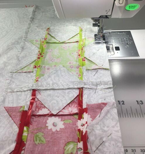 Sew the remaining blocks and border piece together to create one long piece. Press seams.