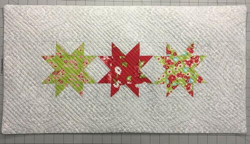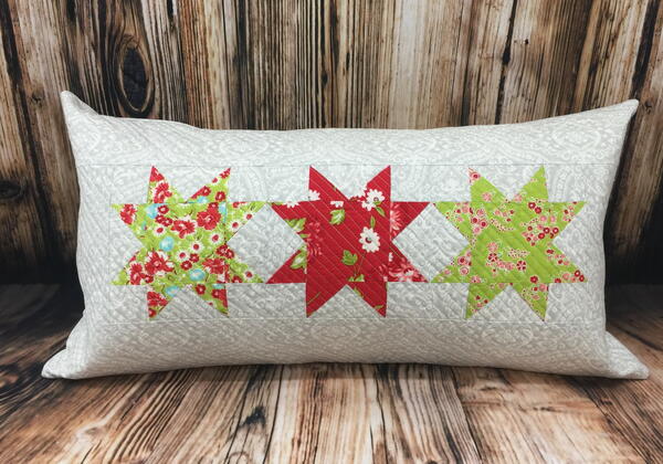 Infuse festive cheer into your decor with the vibrant simplicity of this bright rectangular pillow. The simple design and lively fabrics add a burst of joy to your holiday decorations. Crafted with ease, assemble a handful of flying geese units, and quilt straight lines to bring this pillow to life. The result is a charming addition to your space that effortlessly captures the spirit of the season. Whether placed on a couch, chair, or bed, this pillow serves as a delightful accent, radiating warmth and merriment throughout your home. Embrace the season with a touch of creative simplicity.
