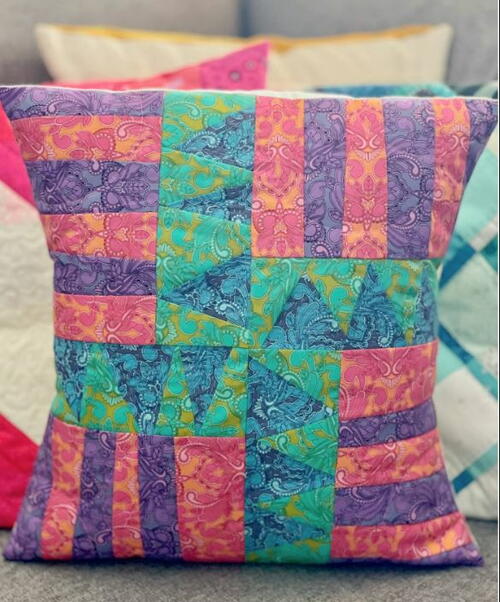 The Improv Patchwork Quilting Pillow Pattern offers a creative and freeform approach to quilting, allowing you to showcase your individuality. This unique pattern encourages quilters to experiment with fabric scraps and colors. The improv quilting method makes each pillow a one-of-a-kind piece of textile art! This quick and easy quilting project can be completed in about 6 hours, making it a new go-to when it comes to one day projects. Hand out a set as a thoughtful housewarming gift and keep one for yourself. With the Improv Patchwork Quilting Pillow Pattern, you can enjoy using up your fabric stash and expressing your inner creativity!