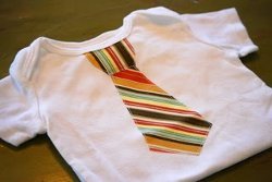 Dress up your little man with an appliqued necktie onesie! With a free applique pattern to print, leftover striped fabric, and a scrap of fusible web, you'll be able to whip up this manly little onesie in no time!