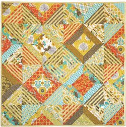 The Sunny Meadow Quilt pattern uses rich golds and reds contrasted with crisp light blue for gorgeous quilts with summer themes. This attractive, geometric pattern makes quilted sofa throws that are beautiful but subdued. The partial seams in half of the blocks in this quilt make this a pattern for a slightly more experienced quilter.