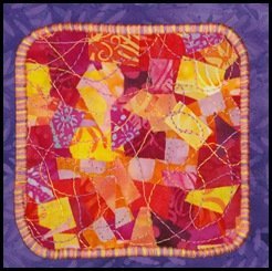 This fun and easy quilted coaster tutorial is the ultimate way to use up the tiniest scraps! Scrap Collage Coasters are made by adhering scrap fabric to fusible web, cutting the fabric into small squares, and then fusing and quilting them to backing fabric. These coasters look best with a mix of similarly colored scraps.