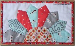 The Sunrise Semi Dresden Mug Rug is made with half a Dresden plate quilt pattern, aligned along the bottom edge of the mug rug so it looks like a rising sun. You can even make the Dresden plate in yellow to reinforce the idea, although the shades of red and light blue in the sample are also beautiful together. Simply applique the semi Dresden plate to a white background, and the entire top is completed!