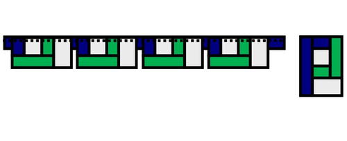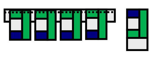 Stitch together the 2 ½" x 7 ½" Background strip, the 2—2 ½" x 1 ½" Fabric B pieces, and 2—2" x 2 ½" Background pieces, as shown. This is the center.