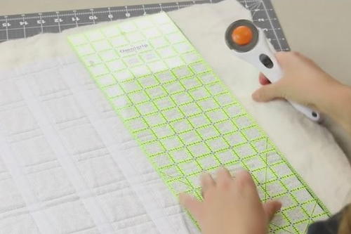 Trim off all the edges by lining up your ruler and cutting off the excess with your rotary cutter.