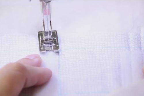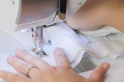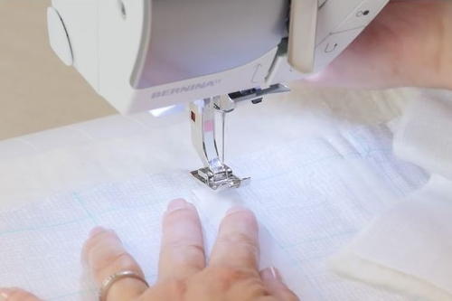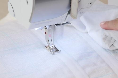 Note: A regular sewing foot works but a walking foot makes this process easier. -