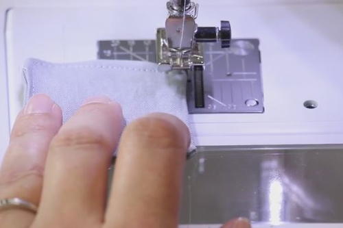 However, leave a small hole on one of the ends for turning the sewn square inside out. -