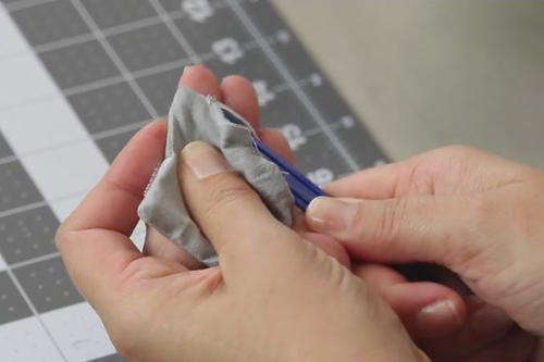 Using that hole you left when you were sewing the edges to turn this piece right side out. Grab a dull-ended object and poke out your corners from the inside.