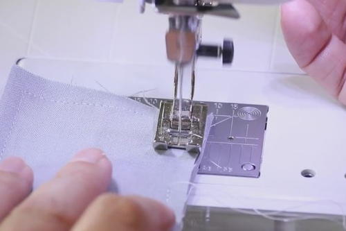 When you get to an end, put your needle down, presser foot up, turn 90 degrees, and continue to stitch until finished. -
