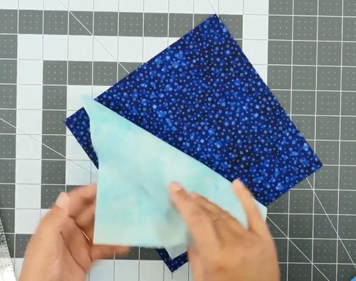 Place your lighter square that has the mark on top of one of your darker squares with the right sides of the fabric facing each other.