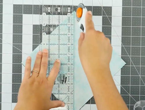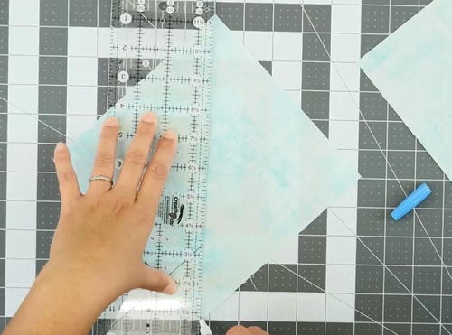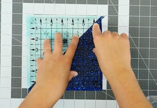 Using a 6.5-inch square ruler, trim your squares to 6.5-inch squares. This is done for two reasons -- to adjust the squares for the proper seam allowance and to correct for your triangles getting out of square.