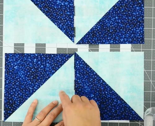 Finally, stitch the two pairs of squares together with a quarter-inch seam allowance to get your final block.