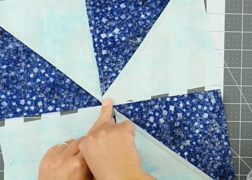 This part is particularly tricky when stitching through the center because you have a bunch of seams meeting all in one place. -