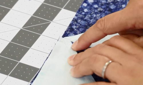 On the back of your lighter squares, draw a line across the bias with a marking pen, like a chalk marker.