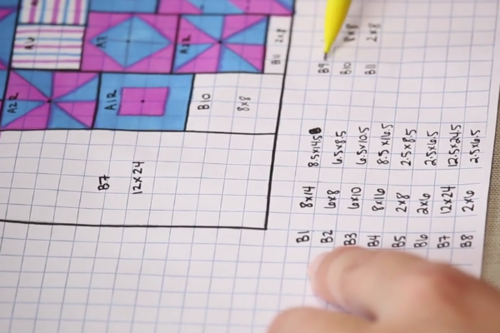 Color in your quilt blocks and other areas to determine how your fabric is going to be used.
