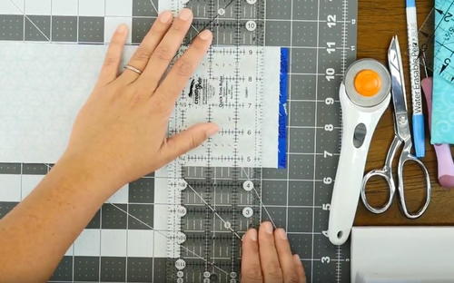 Take two pieces of fabric and cut them into 4.5-inch strips.
