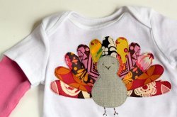 Dress up your little one for Thanksgiving with a simple Turkey T-shirt Applique! With this Thanksgiving Day craft, you can creatively use up fabric scraps in warm autumn colors and pretty prints for the turkey's tail feathers. This turkey applique is fused and machine stitched for extra easy sewing.