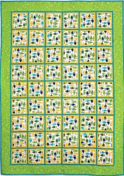 The Boxed In Print Throw is a simple quilt pattern that lets you highlight your favorite prints, as in the owl quilt blocks in this example. Cut squares of an attractive print and surround them with two colors of sashing and a contrasting border.