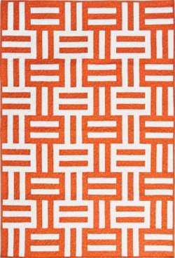 In just two contrasting colors, this rail fence quilt pattern has a stunning geometric pattern. Use AccuQuilt dies to cut strips of orange and white fabric and then combine them in the pattern shown to create the Rail Fence Pizzazz quilt.