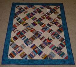 Free string quilt patterns are a wonderful way to use up fabric scraps, especially the long strips trimmed from squares for other projects. The String X Lap Quilt gives you a convenient and attractive way to piece and quilt those strips.