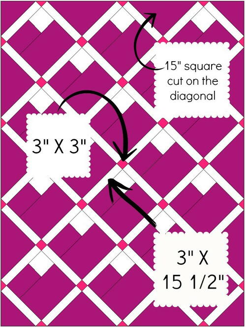 - Sub cut the 15” squares diagonally to make 14 triangles
