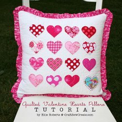 Quilted Valentine Hearts Pillows are great valentine decoration projects. These simple quilted toss pillows are made with rows of Valentine's day appliques on a plain, quilted background. Add a pink ruffle for a fun and frilly decoration!