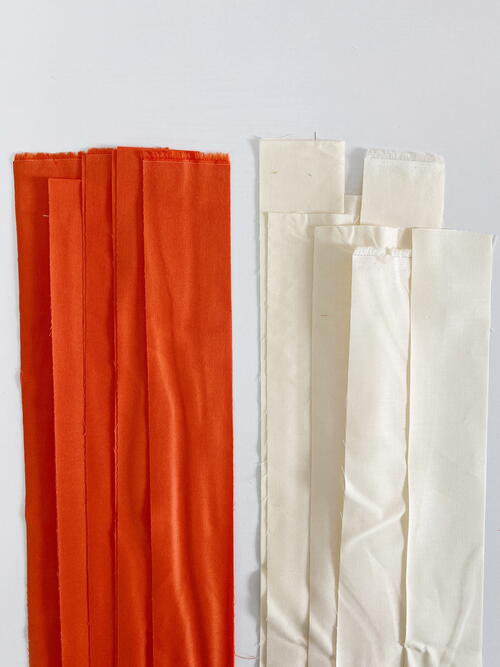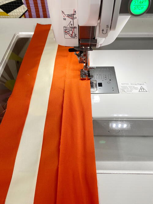 For the facing strips, iron each strip lengthways to measure 3” wide.